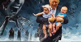 Jenen, die das Theater durchschauen, wird was erzählt. Muß es. Und das, was erzählt wird, das kann auch stimmen. Erzählt wird, daß wir auf der Theaterbühne so etwas wie einen Film sehen und in Wahrheit die Trump-Administration bzw. der integre Teil davon, mitsamt dem vereinten Militär vieler Länder und Q, in einer gigantischen Operation Jagd auf menschliche (materiell menschenartige) und außerirdische Kinderquäler und Blutsäufer macht.