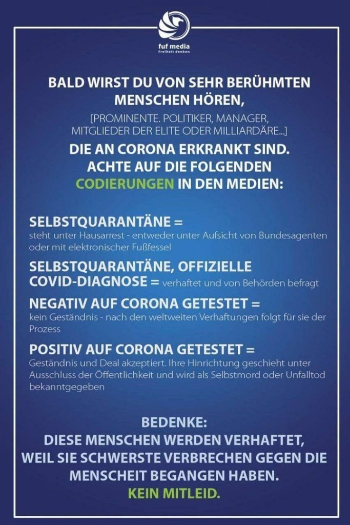 Und erst langsam merken die Deutschen, dass speziell sie gemeint sind mit dem Corona-Genozid, dass vor allen Dingen sie weg sollen.