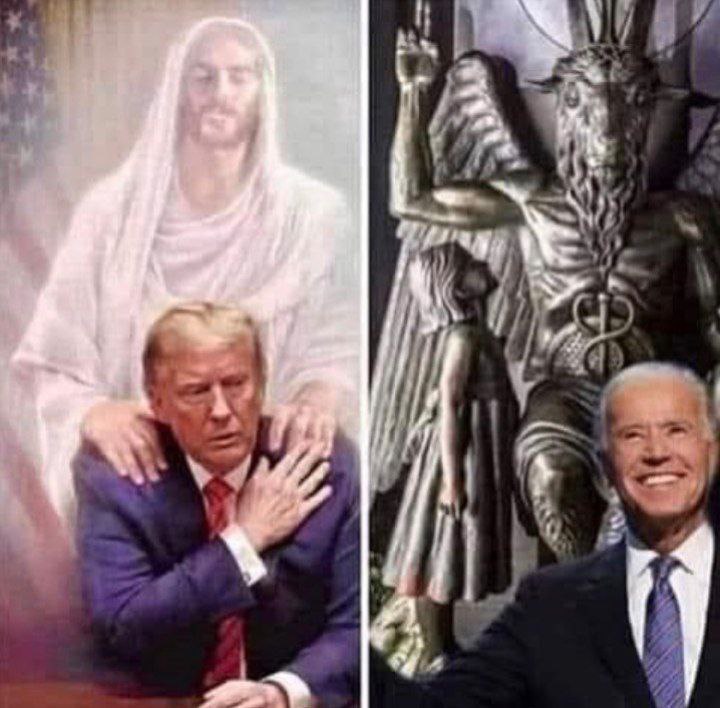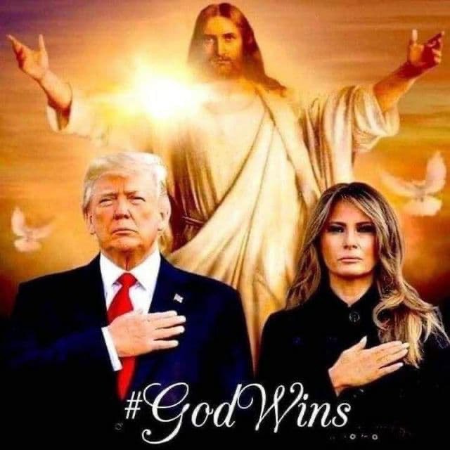 Nun war ich ein wenig verwirrt, weil Herr Thomsen den Trump mit seinem Q regelrecht feiert! Trump ist doch DER Held. Da gibt es Bilder, wo Jesus und Trump ganz ein inniges Gespann sind. Jesus legt dem Trump segnend die Hände auf die Schultern und ähnliches, vieles was die Bedeutsamkeit von Herrn Trump schon fast mit einem heiligen Nymbus umgibt.